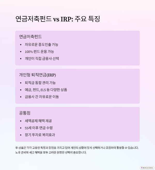 연금저축펀드와 IRP의 주요 특징 비교
